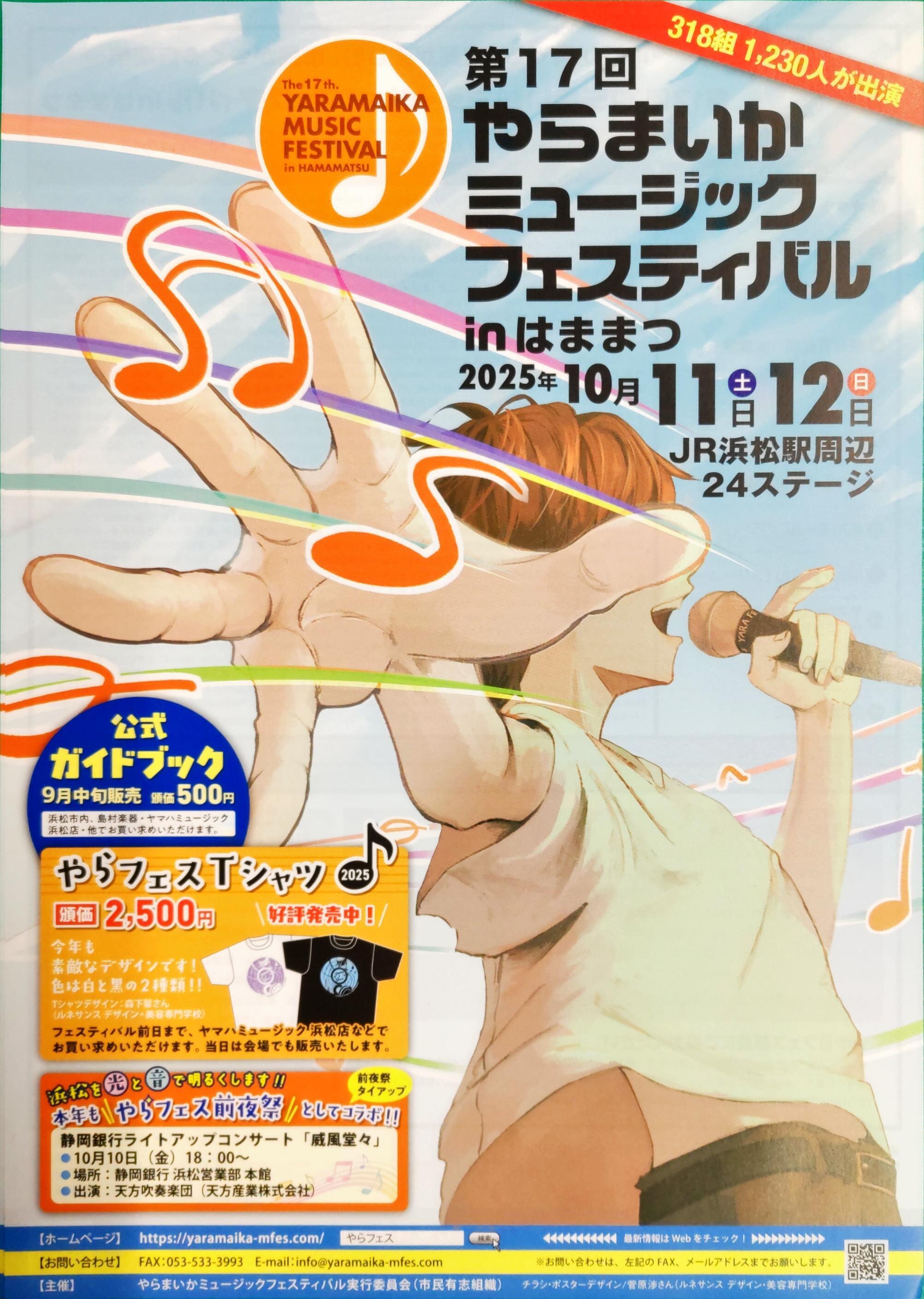 本校の郷土芸能部と軽音楽部が、10月12日(日)に開催される「第17回やらまいかミュージックフェスティバル in はままつ」に出演します。