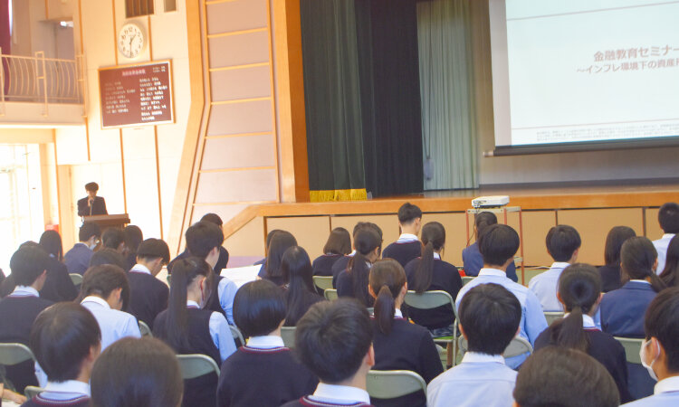10月28日、高校1年 ビジネスキャリアコース生を対象に、静銀ティーエム証券のご担当者をお招きし、「金融教育セミナー〜インフレ環境下の資産形成〜」が行われました。