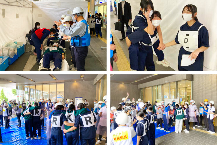 10月26日、浜松市内で実施された「浜松市医療救護訓練」において、本校看護科1〜3年の生徒40名が模擬患者として参加しました。