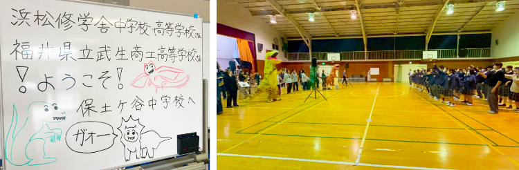 前日は横浜市立保土ヶ谷中学校をお借りして練習、同じく練習のため来校されていた福井県立武生商工高校や保土ヶ谷中学校のみなさんで相互発表しました。