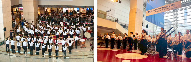 当日は本番の演奏を終えた後、みなとみらいスクエアガーデンにてプロムナードコンサートも行い、多くの買い物客が足を止めて演奏に耳を傾けました。