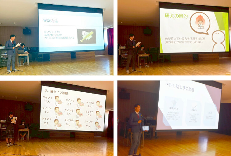 発表テーマは「応援の効果」「色にはどのような力があるのか」「脳の多様性」「人に伝えるには」の4題で、いずれも身近な疑問から出発しながら、深い考察がなされた内容でした。