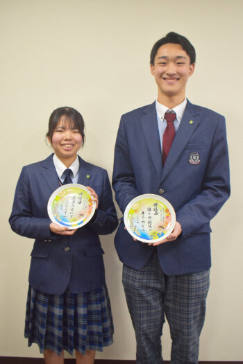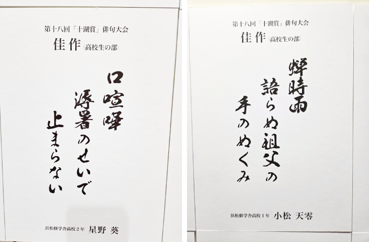 2月11日に浜松市総合産業展示館にて開催された第十八回「十湖賞」俳句大会の表彰式において、高1の小松天零くんと高2の星野 葵さんが佳作に入賞し、表彰を受けました。