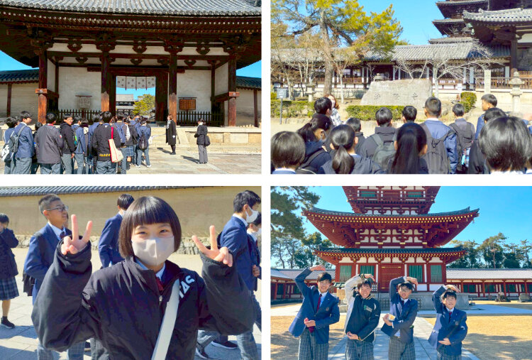 1日目は奈良方面を中心に見学し、法隆寺や薬師寺、奈良公園(東大寺大仏殿)など、日本の歴史を代表する文化財に触れました。