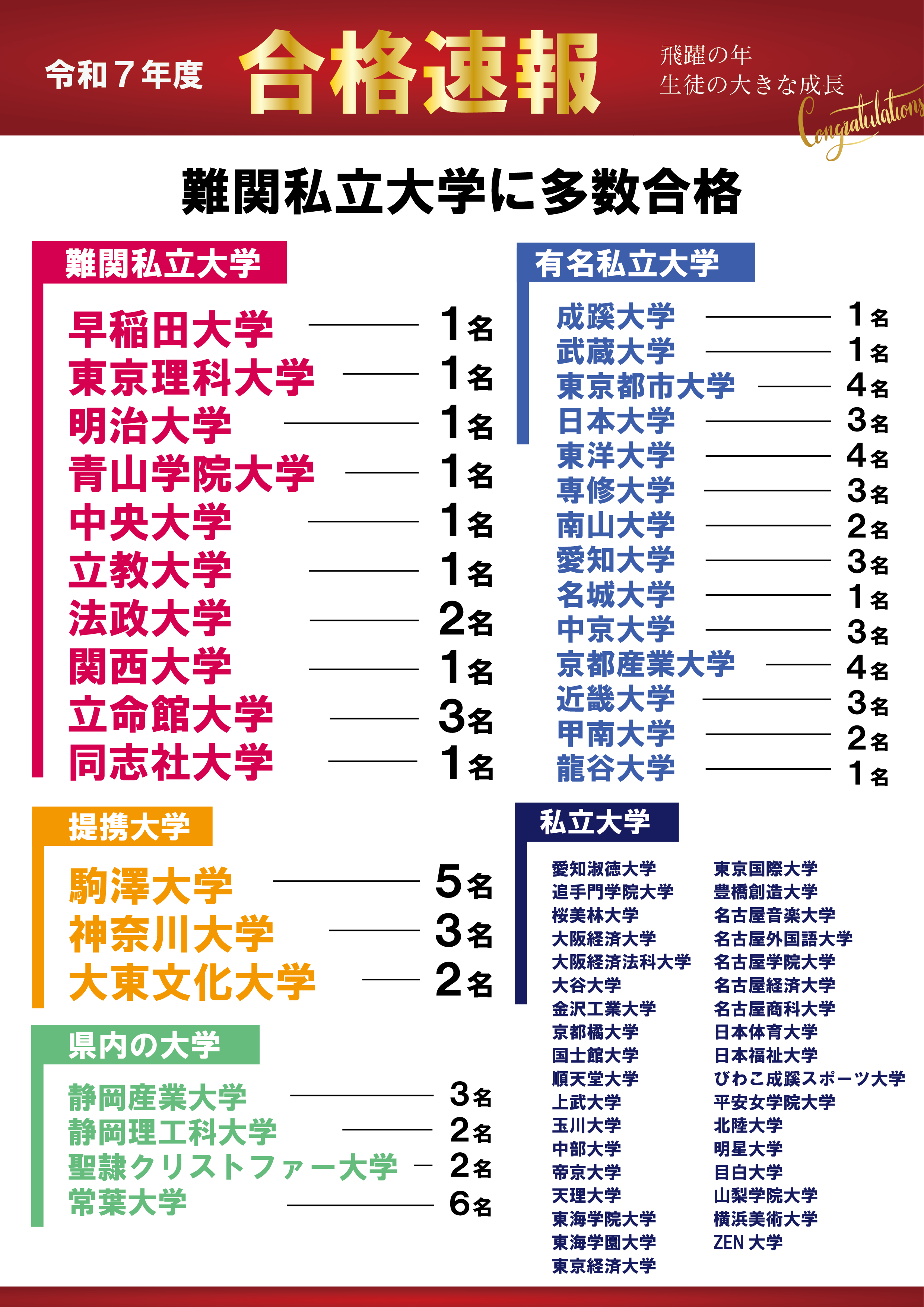 今年は国公立大学が過去最多と、目を引く実績となっております。