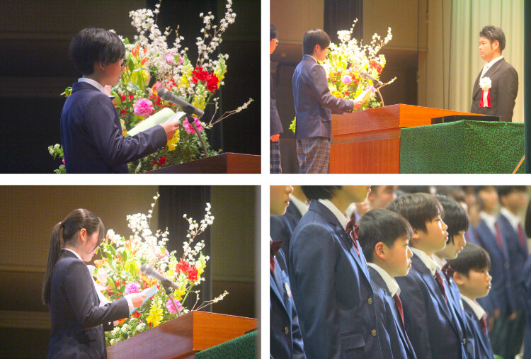 来賓紹介、祝電披露の後には、新入生代表による「入学の決意」が述べられ、これから始まる学校生活への力強い意志が感じられました。