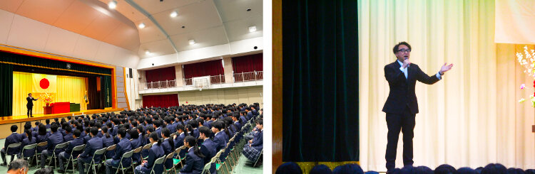 その後、本校英語科特別顧問の安河内哲也先生が登壇し、新入生に向けてお祝いの言葉をいただきました。
