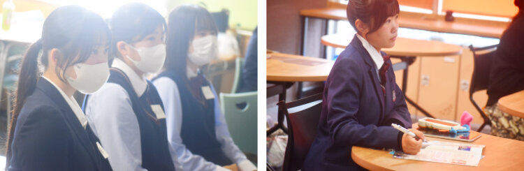 パンフレットやホームページだけではわからない「実際に働く場所の雰囲気」や「看護師としての成長を支える制度」について知ることができ、生徒たちは真剣な表情で説明を聞いていました。